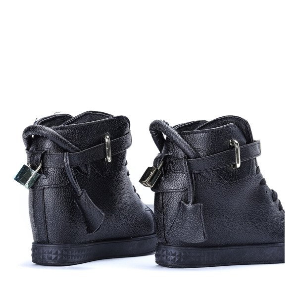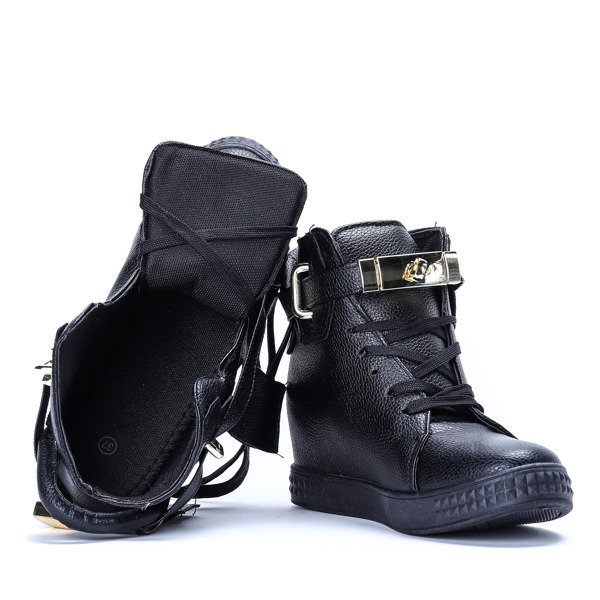 • Sensational black wedge sneakers made of eco leather. Lace-up shoes so they can be perfectly adjusted to the leg. Great women's shoes that will complement any original styling.