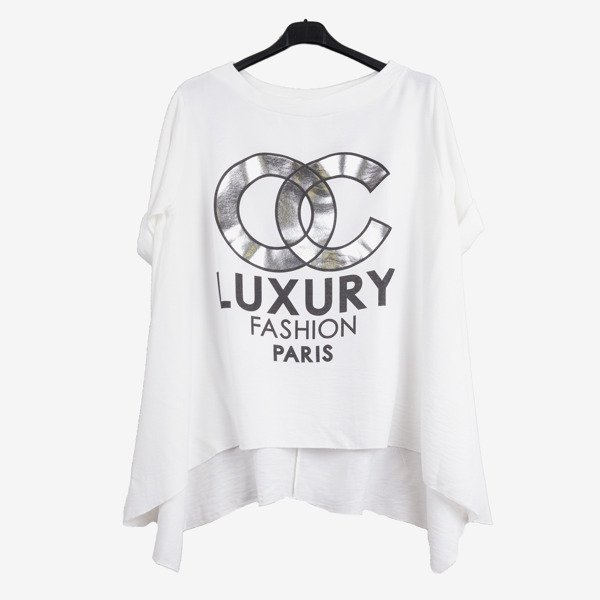 - Women's tunic with short sleeves made of fabric material. Decorative print on the front of the blouse. Works great with shorts or leggings. NOTE: Measurement accuracy (+/-) 1 cm.