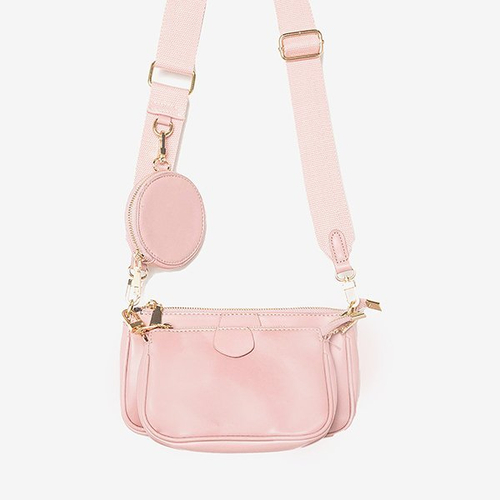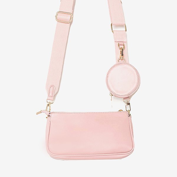 - Three-piece small women's handbag made of ecological leather. The model is fastened with golden zippers. The model has: - 2 inside pockets, including 1 fastened with a zipper, - adjustable strap