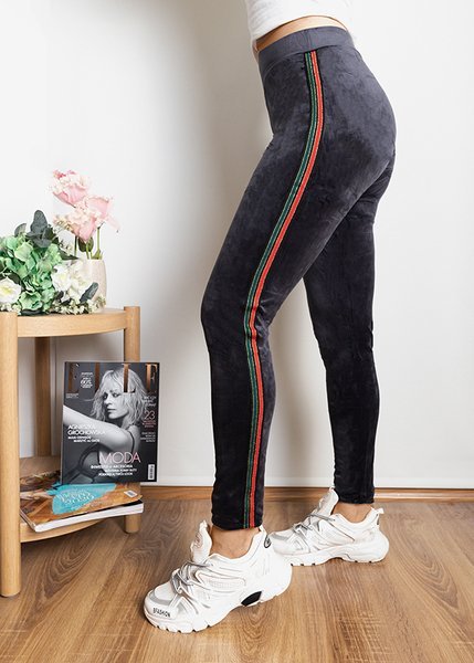 - Women's leggings made of elastic, pleasant to the touch fabric. The model has an elastic waistband and stripes on the sides of the legs. Perfect for active time! NOTE: Measurement accuracy (+/-) 1 cm.