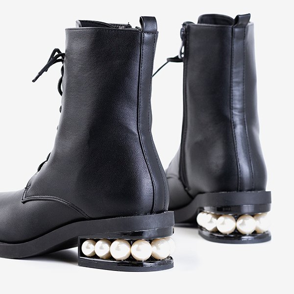 • Classic ladies' flat-heel trainers with pearls. The upper is made of ecological leather in black. The interior is lined with fabric. Lace-up shoes and side zippers. They will be a great decoration for everyday styling.