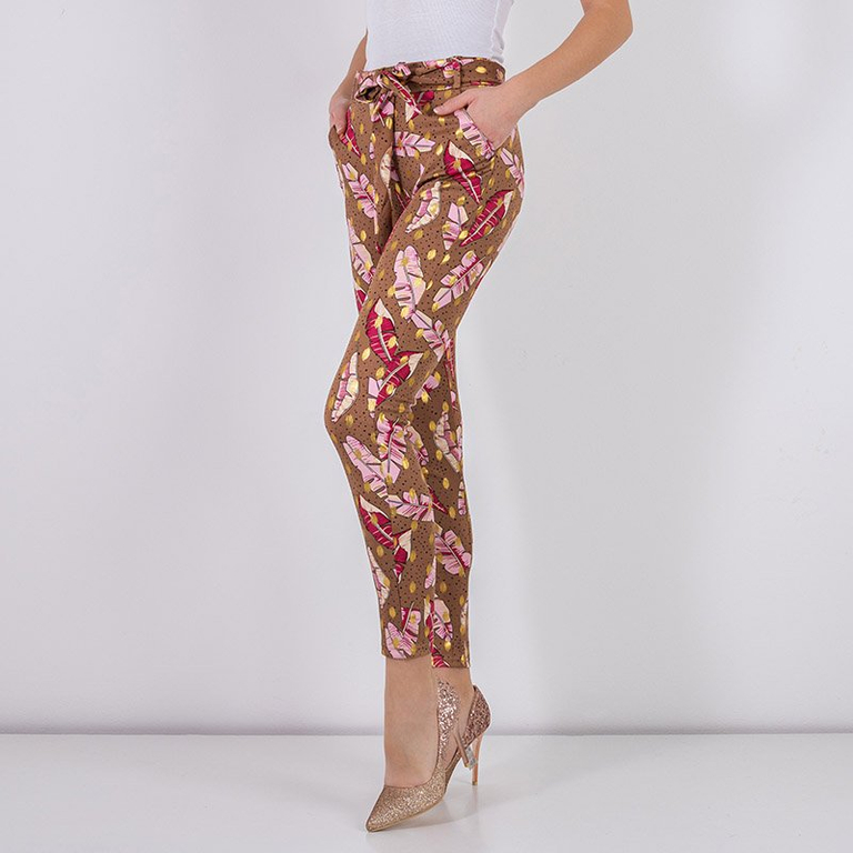 - Elegant ladies' feather treggings made of stretchy feather fabric. The model has an elastic waistband, two slip pockets and a matching color belt. The perfect accessory for your shirt! NOTE: Measurement accuracy (+/-) 1 cm.