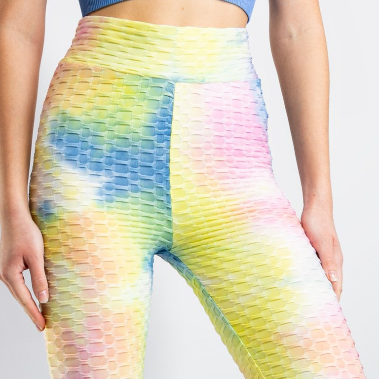 • Women's high-waisted sports leggings. The model is made of a stretchy fabric decorated with spots. A wide, elastic band at the waist. They ensure freedom of movement during training. NOTE: Measurement accuracy (+/-) 1 cm.