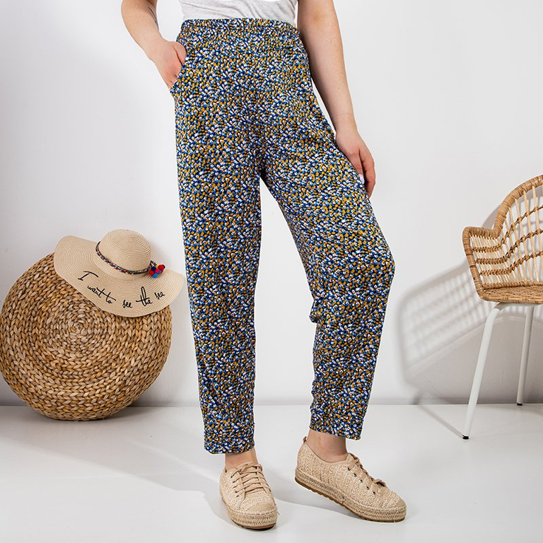 • Women's patterned fabric pants made of lightweight cotton. The model has a stretch elastic waistband and two slip pockets. A perfect addition to a shirt! NOTE: Measurement accuracy (+/-) 1 cm.