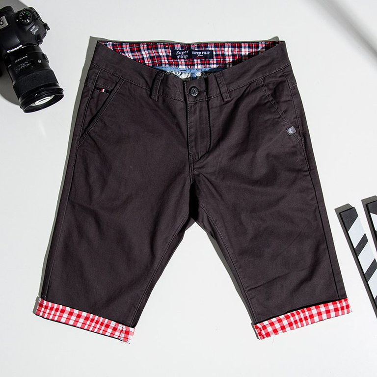 - Men's shorts reaching above the knee - shorts, made of soft cotton fabric. Model with low waist, rolled up legs and 4 pockets NOTE: Measurement accuracy (+/-) 1 cm.