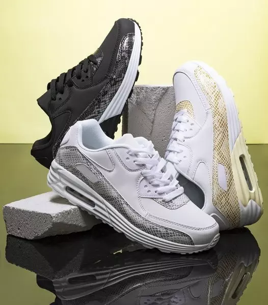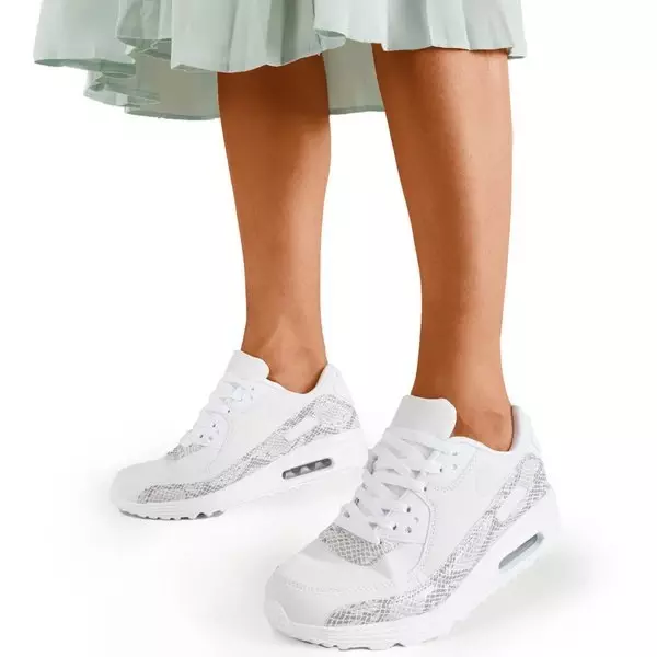OUTLET Women's white sports shoes with light gray inserts a'la snake skin Silada - Footwear