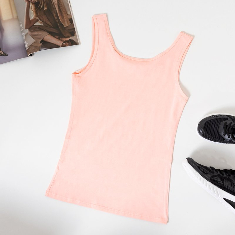 Light pink women's T-shirt with wide straps - Clothing