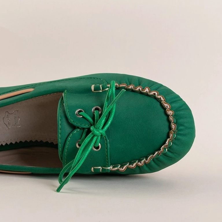 OUTLET Green women's moccasins with lacing Norami - Footwear