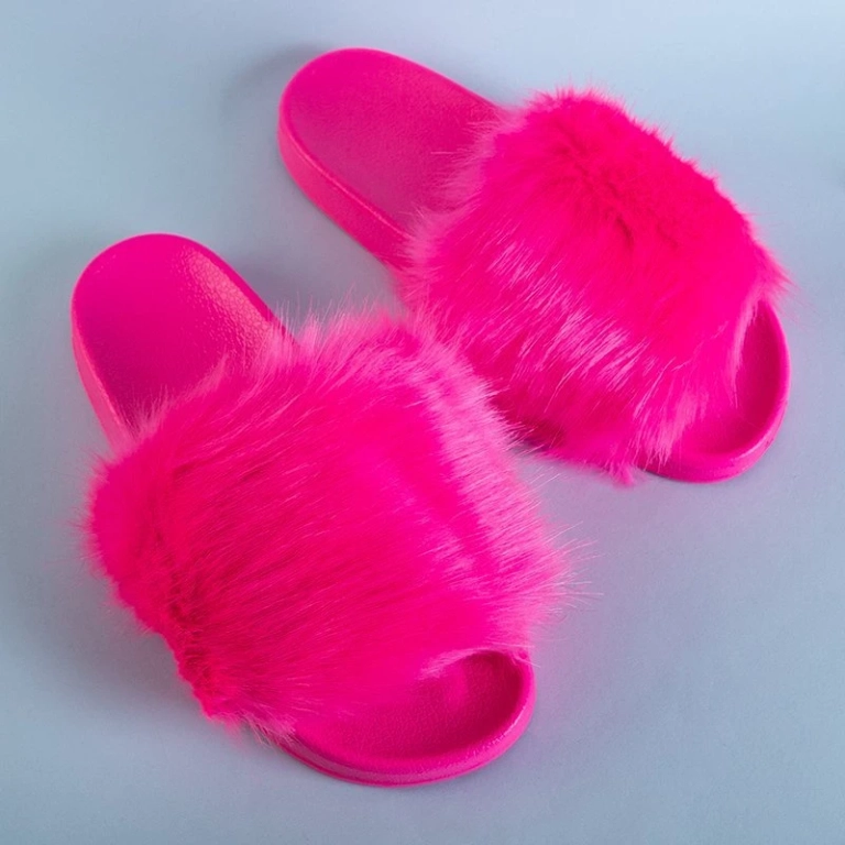 OUTLET Neon pink women's slippers with fur Danita - Footwear