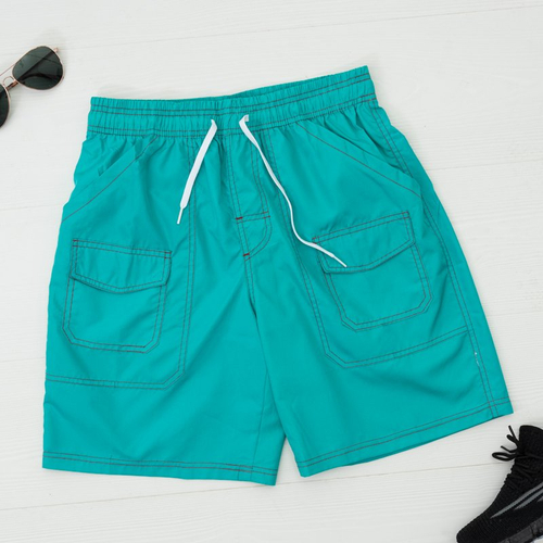 - Men's short shorts made of stretchy material - perfect men's shorts for summer! The model has 6 pockets, elastic waistband and ties and mesh inside. NOTE: accuracy of measurement (+/-) 1 cm. Dimensions measured flat.
