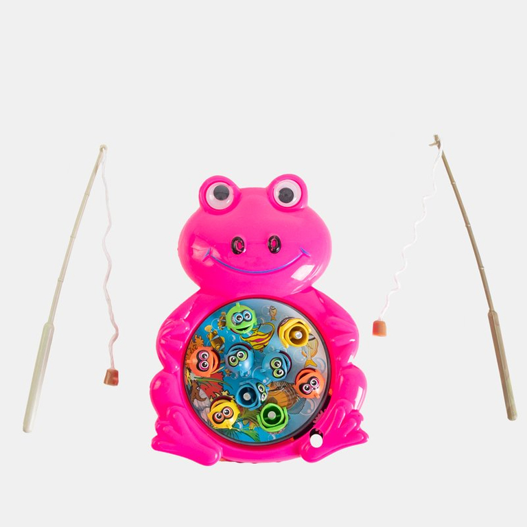 - Children's fishing toy, made of plastic. Set includes: 8 colorful fish and 2 fishing rods with magnets. After starting the game, the wheel in the center begins to rotate and the fish open their faces with magnets.