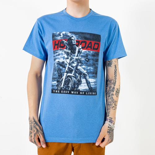 - Classic men's t-shirt made of 100% cotton. Model with short sleeves and round neckline. The front part of the t-shirt is decorated with a print. NOTE: Measurement accuracy (+/-) 1 cm.
