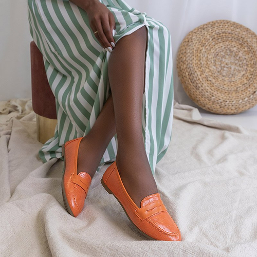 • Classic women's moccasins with a flat heel, made of ecological leather with embossing. In the middle a soft, eco-leather insole. Very light and comfortable footwear!