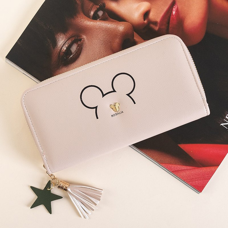 - Ladies' leatherette wallet with zipper. The zipper is decorated with a star and tassel. The model has: - 2 compartments, including 1 with a hidden pocket, - 10 pockets, including 8 smaller ones for payment cards or other documents.