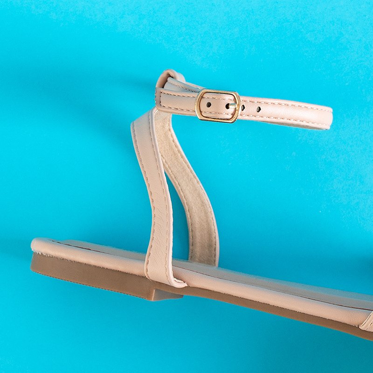 Beige women's flat sandals with pearls Lucyla - Footwear