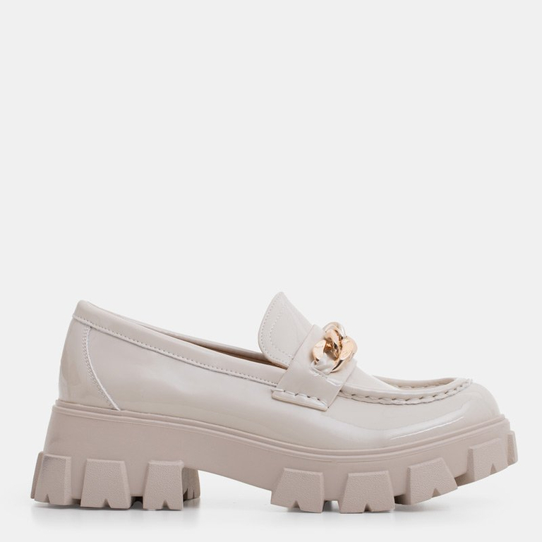 Light beige women's lacquered half shoes with chain Ginevra - Footwear