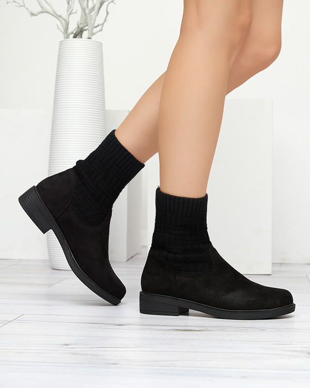 - Women's warm boots with soft eco-suede and sock finish. High upper reaching the ankle. Inside, covered with a delicate fur. Model with flat heels and a rounded toe. Perfect for colder days!