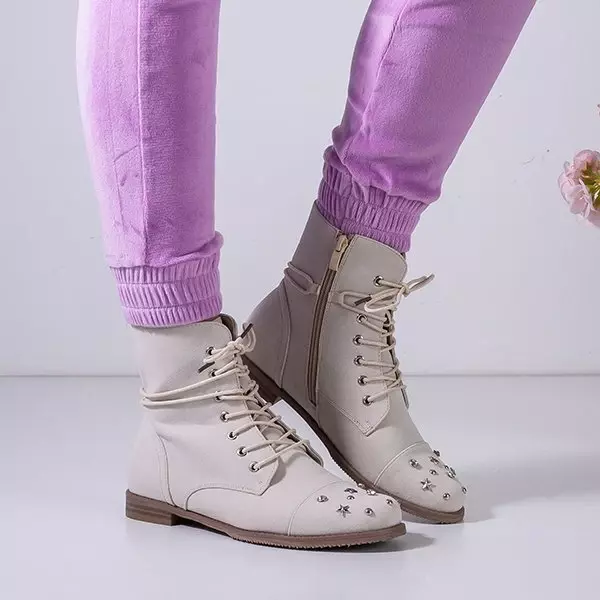 OUTLET Beige women's boots with embellishments Matildat - Footwear