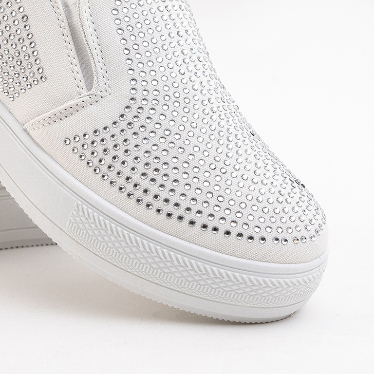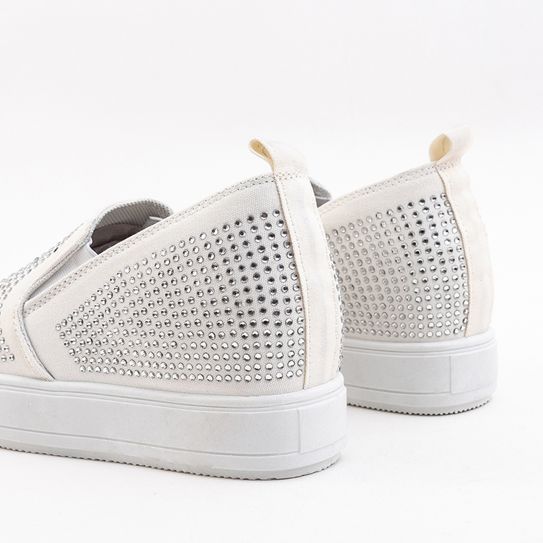 White shoes with a hidden wedge with cubic zirconia Fisi- Footwear