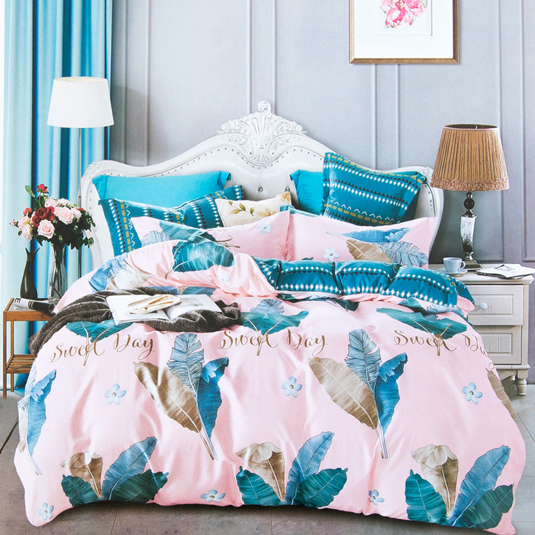 Pink leaf cotton bedding 160x200 set 4 parts - Bed linen