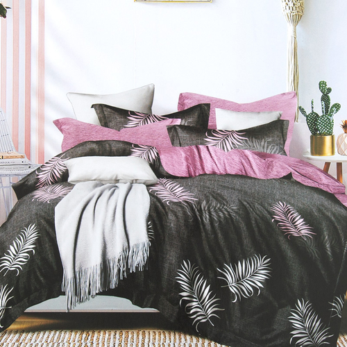 Black and gray leaf cotton bedding 160x200 set 4 parts - Bed linen