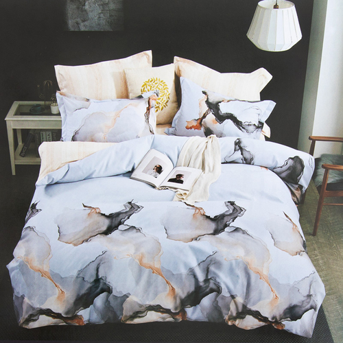 Gray and blue cotton bedding 160x200 3-piece set - Bed linen