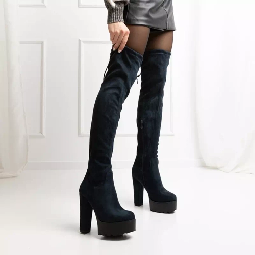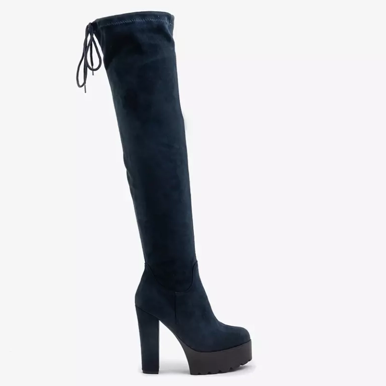 OUTLET Women's navy blue over-the-knee boots with high heels Numi - Footwear