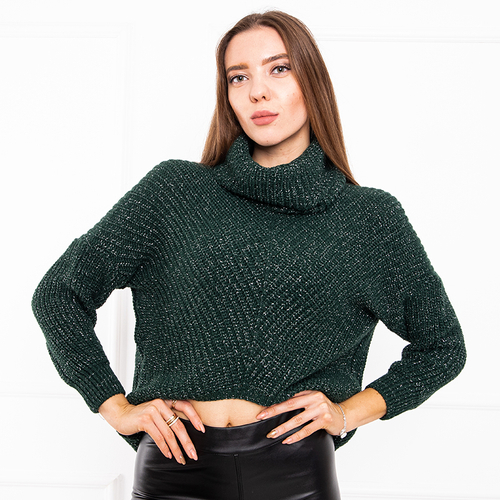 - Warm women's turtleneck sweater, made of acrylic material interlaced with silver thread. The model with a cutout on the belly, has long sleeves. Must have in the closet of every woman! NOTE: Measurement accuracy (+/-) 1 cm.