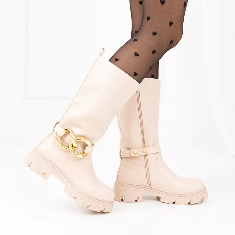 OUTLET Beige women's boots with a chain Helari - Footwear