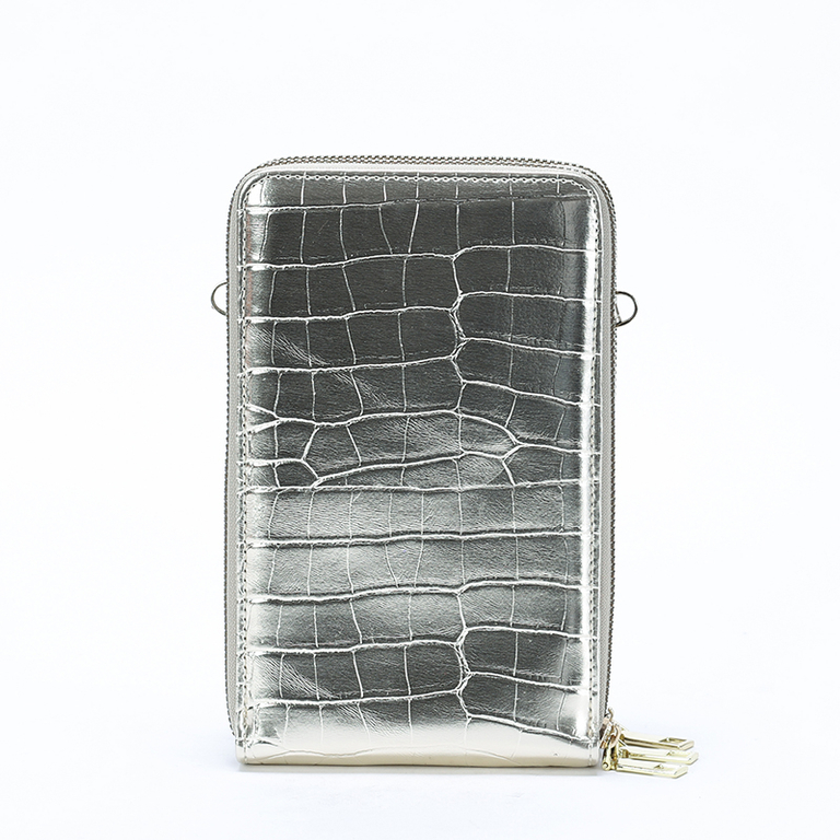 • Women's mini shoulder bag, made of ecological leather with embossing and zippers.The model has :- 3 zippered compartments,- 8 pockets for payment cards or other documents,- additional adjustable, detachable strap.