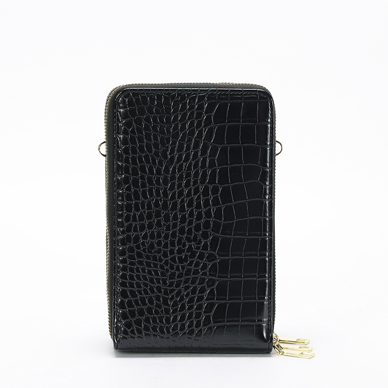 • Women's mini shoulder bag, made of ecological leather with embossing and zippers.The model has :- 3 zippered compartments,- 8 pockets for payment cards or other documents,- additional adjustable, detachable strap.