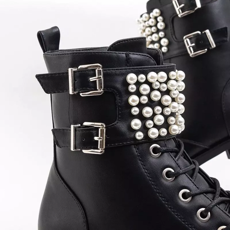 OUTLET Black women's boots with pearls Iznala - Footwear