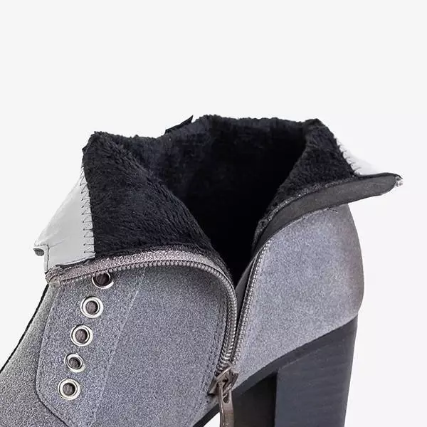 OUTLET Gray women's ankle boots with decorations Valor - Footwear