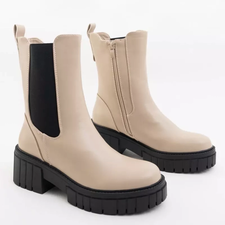 - Women's work boots, made of ecological leather. The model is fastened with a zipper, warming inside. The shoes have a platform. A classic must have for every woman! Note: the product has scratches on the material.