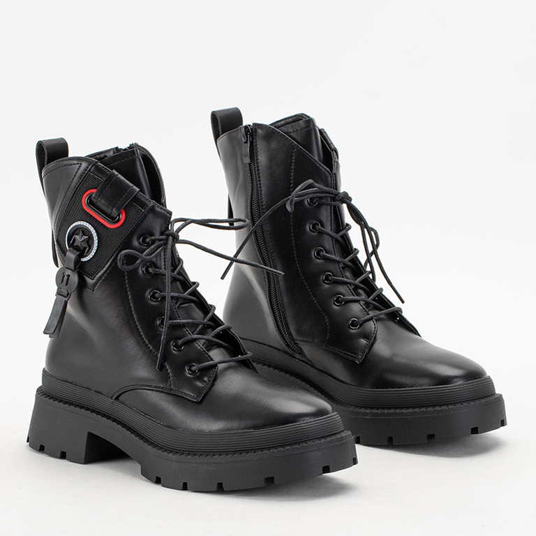 Black women's ankle boots with flat heels with Sidora decorations - Footwear