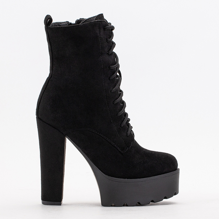 • Fashionable women's boots with a high post and a massive platform. Made of soft eco-suede, fabric-covered insole. Lace-up and zippered model. A small handle at the back. They will perfectly complement any autumn outfit!
