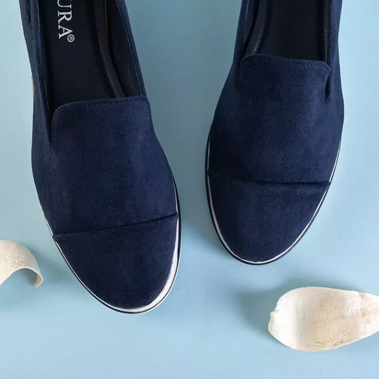 OUTLET Women's navy blue loafers on a low wedge Dardariel - Shoes