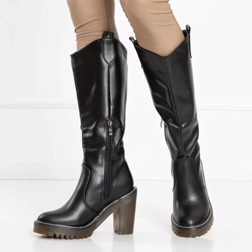 - Sensational women's boots on a stable post and zippered. The upper is made of ecological leather, inside they have a delicate insulation in the form of fur. Note: the product has scratches on the material.
