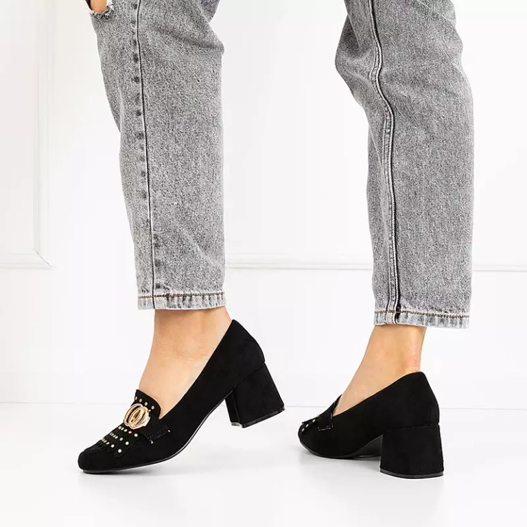 OUTLET Black pumps on the post with a decorative Nell-shoes upper