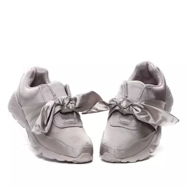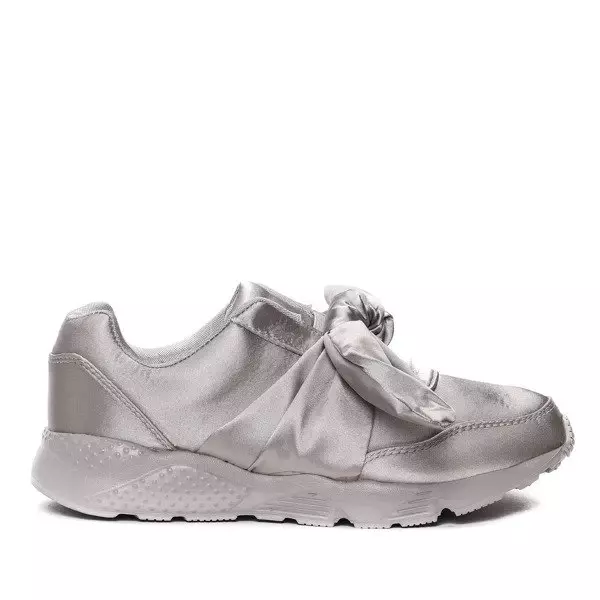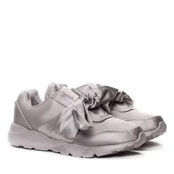 OUTLET Gray, satin sports shoes with a bow Mabel- Shoes