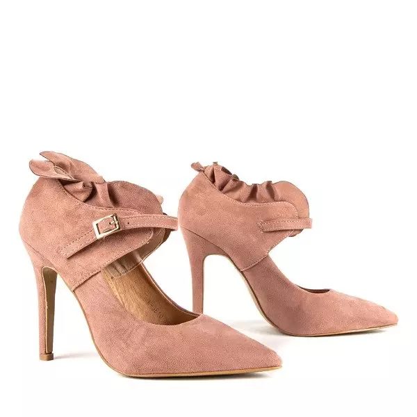 - Elegant pink high heels on a high heel. The material is made of soft ecological suede, and the insole is covered with ecological leather. Note: the product has traces of glue on the material.