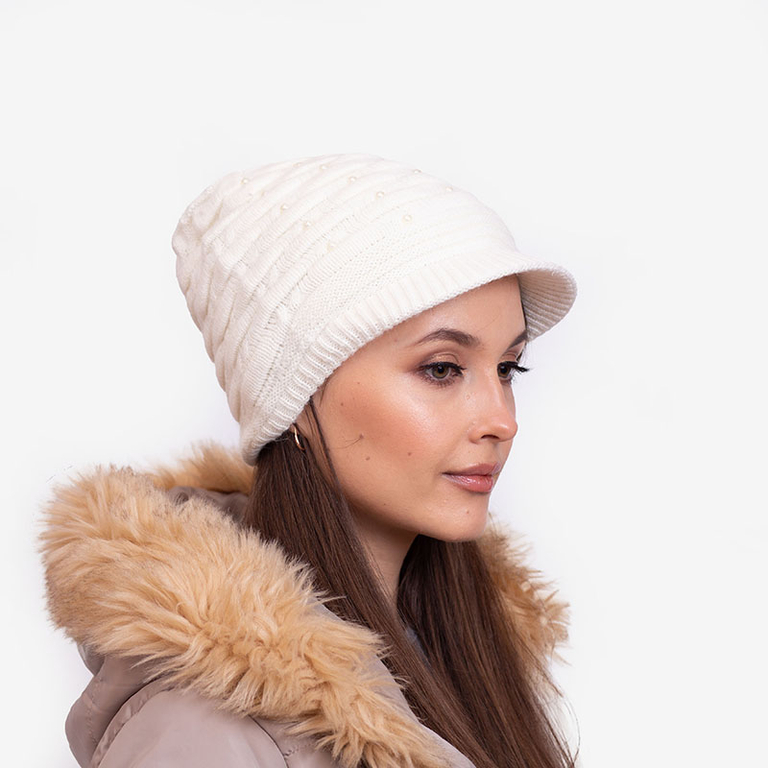 • Warm and soft women's double-layer winter hat. Model with a visor, it does not have a lining and is decorated with pearls. Perfect for cool and cold days!