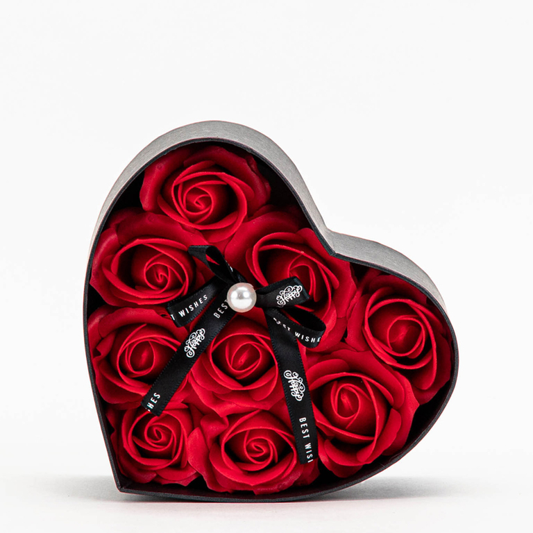 - Surprise gift in a heart-shaped box - inside flower decorations made of foam material, ribbon with an inscription and a pearl. Great for a Valentine's Day or birthday gift for a loved one!