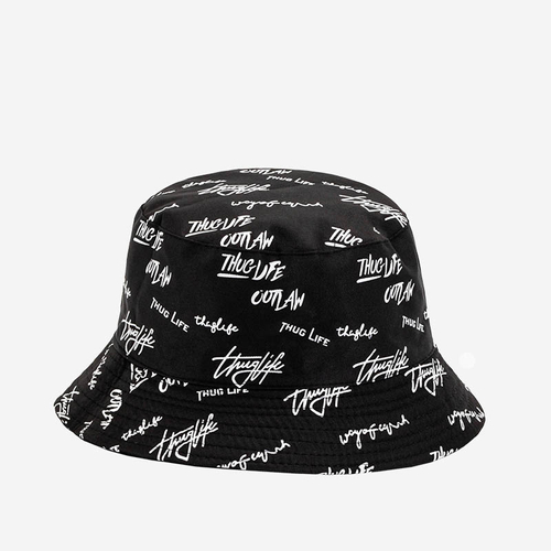 - Mega stylish two-sided bucket hat with text. The universal size product has a drooping, round brim that covers the forehead and eyes. This fashionable headdress must be in your wardrobe!