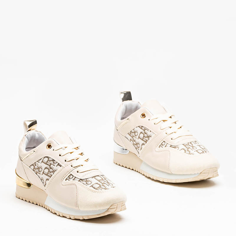 Beige women's sports shoes with a silver insert Klam - Shoes