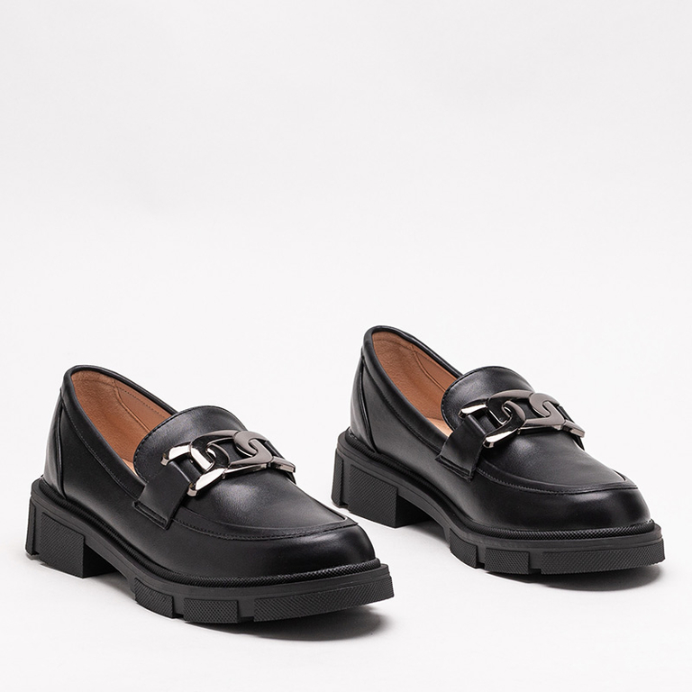 - This season's most fashionable women's half shoes on a thick sole. The upper as well as the insole are made of ecological leather. The toe is decorated with a plastic chain. Perfect footwear for everyday wear.