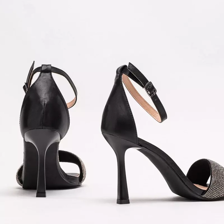OUTLET Black women's sandals on a high heel Enedi - Footwear