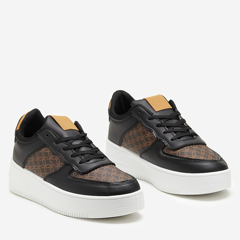 • Women's sports shoes made of eco-leather. Lace-up upper, decorated with a print. The lining is fabric. The model has a comfortable, thicker sole. Perfect shoes for everyday use.