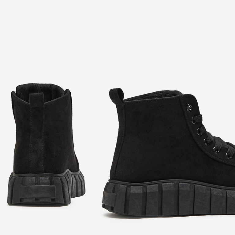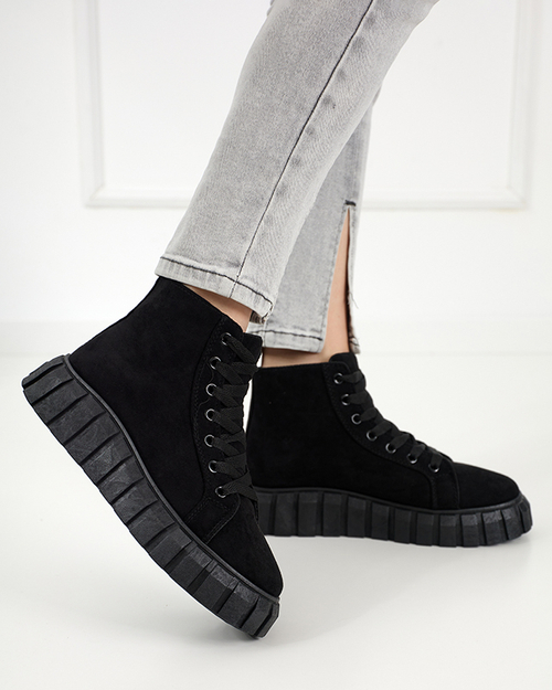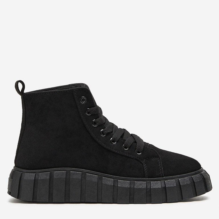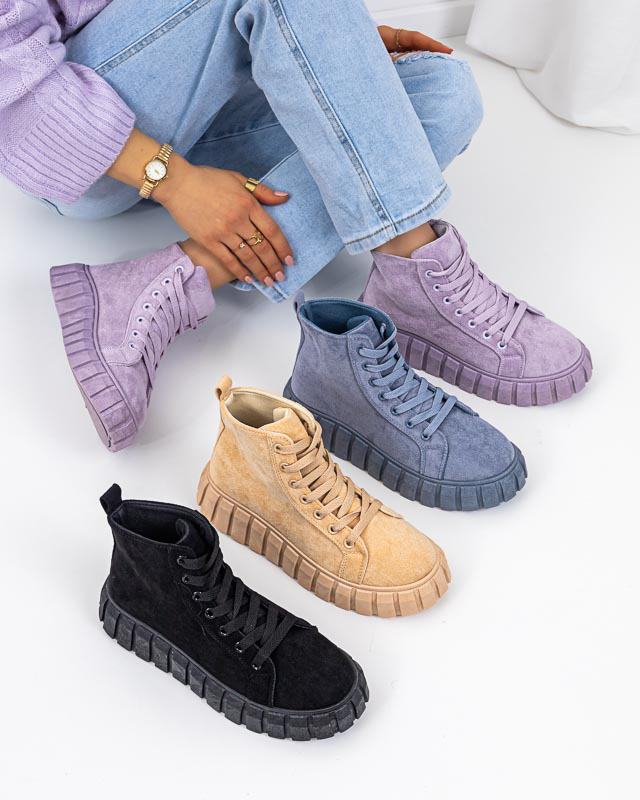 - Unique women's high sports shoes on a massive sole. Lace-up upper made of ecological chamois leather, the center lined with fabric material. The perfect base for many everyday looks!