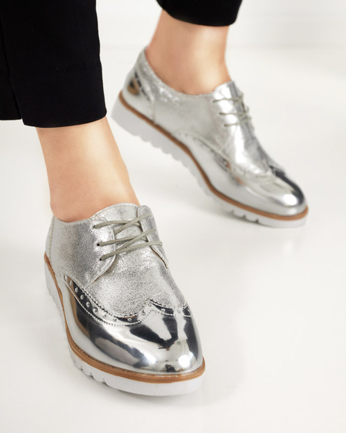Women's silver shoes with glittery silver retinis inserts - Footwear